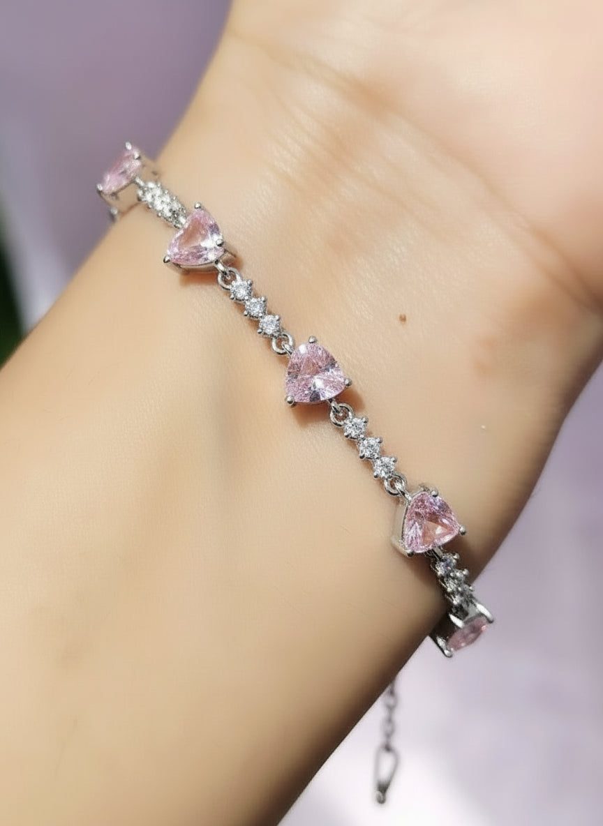 The pink hearts are SO sparkly and gorgeous! It's dainty but still makes a statement. Love that the slider adjusts to fit perfectly. Wore it on a date and got compliments all night. Already thinking about getting another variant! 💕