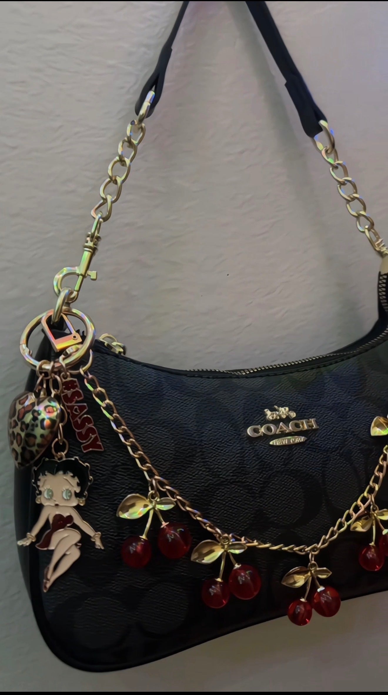 Obsessed with this bag. The charms and details are so cute and I get compliments every time. Best purchase ever! 🖤✨