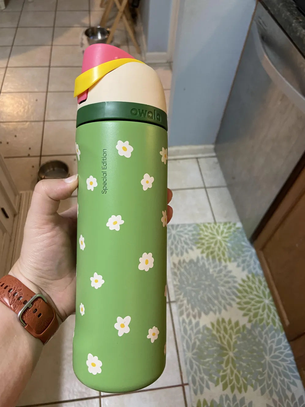 "I'm literally obsessed with my Darling Daisy FreeSip! The color is so cute and I love how I can either sip or swig depending on my mood. My water stays cold ALL DAY even in my hot car during cheer practice! Worth every penny 💅"