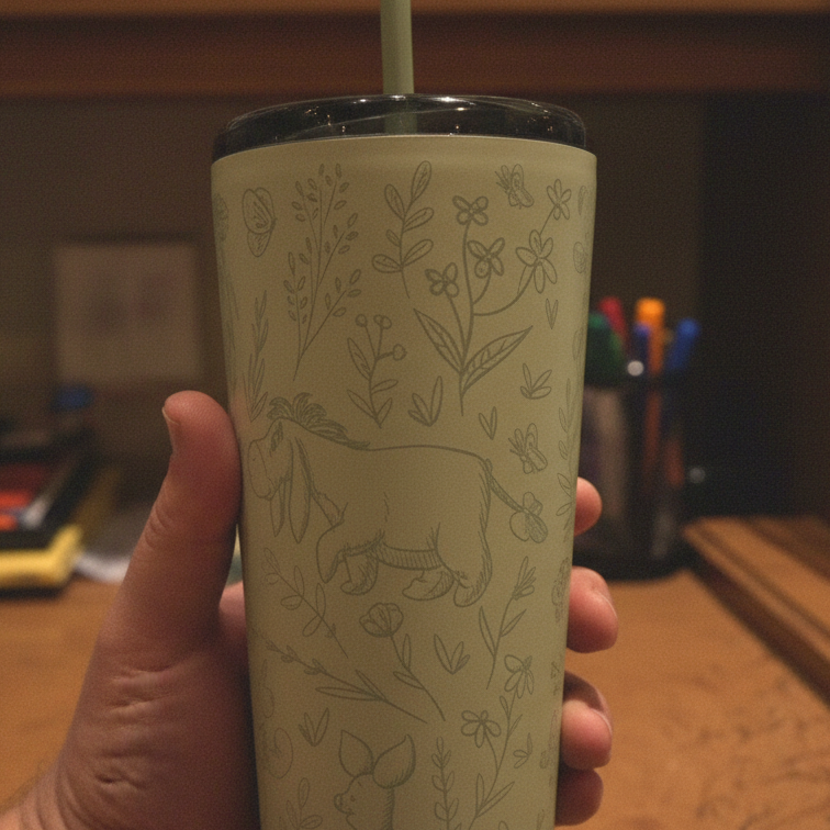 The etching is so delicate in person. My whole collection is now Pooh-themed and I'm not even sorry. These photograph beautifully!