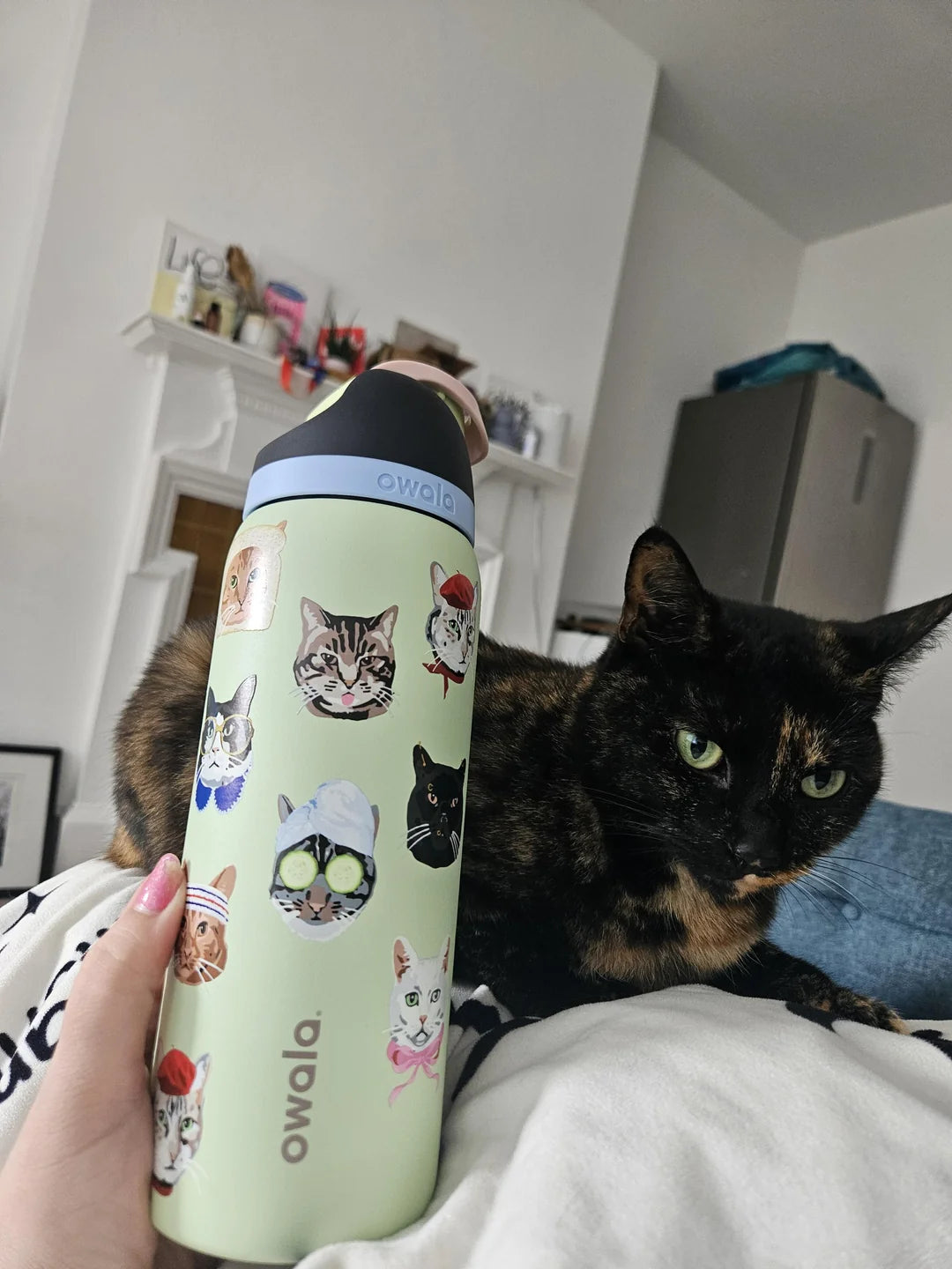 "Okay this is literally the cutest thing ever! 😭💕 My baby clearly thinks she's one of the cats on the bottle (peep the photo). The design is absolutely perfect and everyone asks where I got it. Keeps my water ice cold all day and the sip feature is chef's kiss. Now I match my furry bestie! "