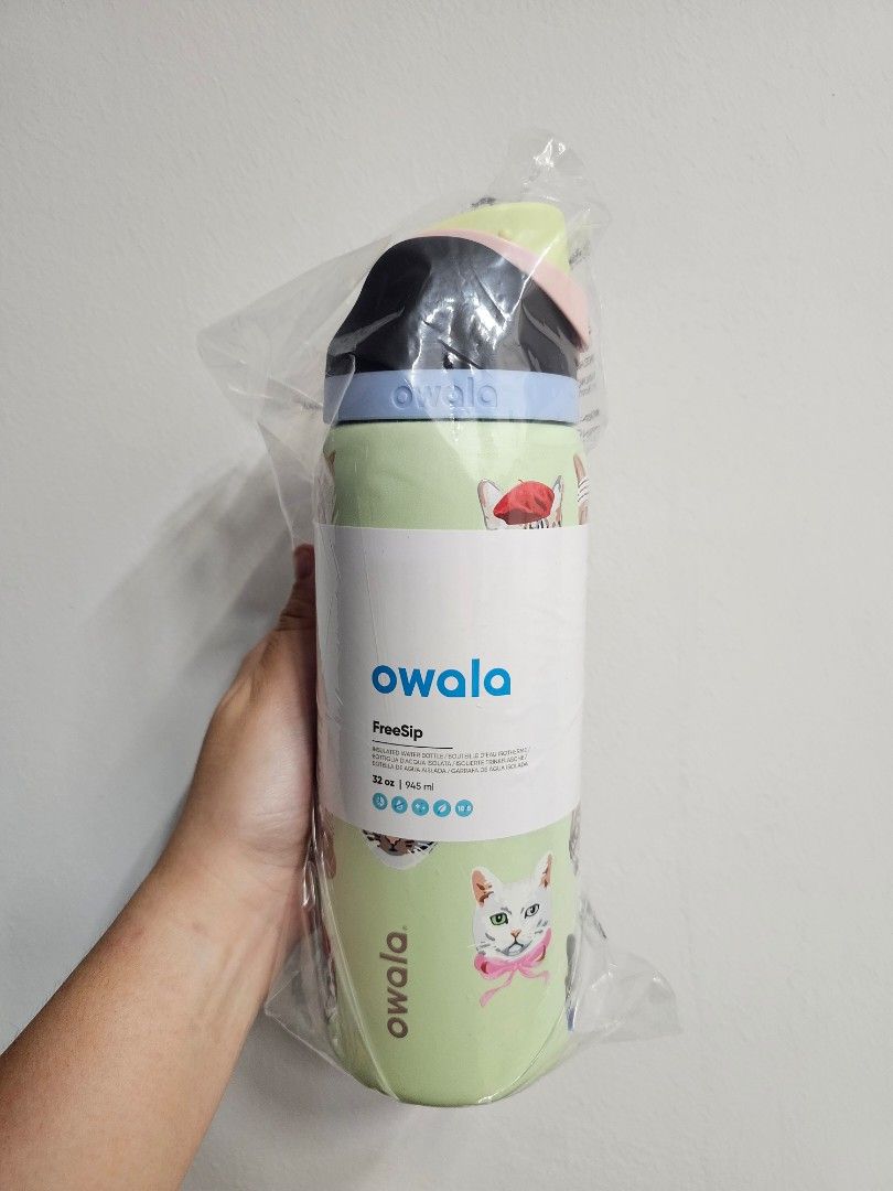 "Just got my Owala and I'm literally in love! 😍 The cat design is so freaking adorable and I get compliments constantly. The FreeSip feature is a game changer - no more awkward tilting. Perfect size and feels so premium. Already planning my next one! Best purchase all month tbh "