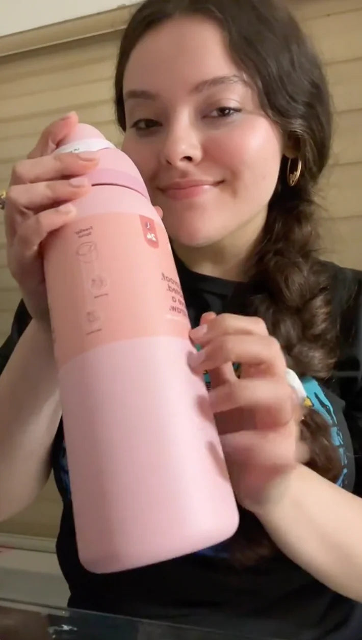 "Y'all I only had a Stanley before and this is WAY cuter and actually fits in my car cupholder?? The button is so satisfying and it keeps my water cold all day during cheer practice!"