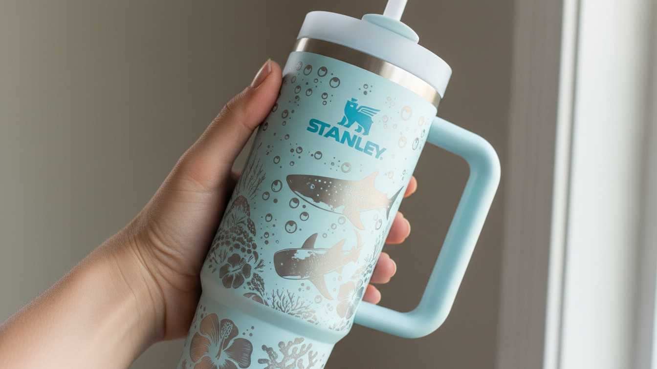 The whale sharks scattered across this tumbler are so dreamy. Each detail is perfectly placed and it's way cuter in person.